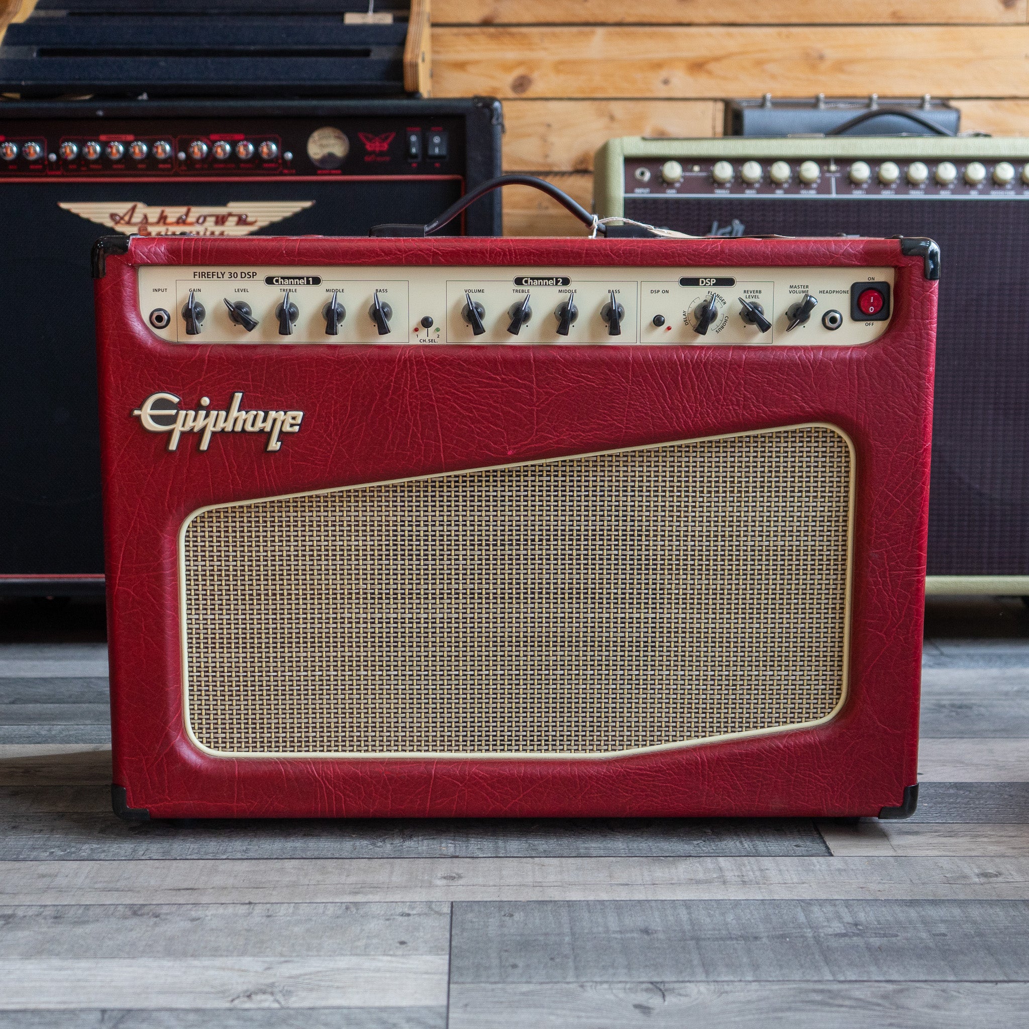 A nice, clean example of the extremely handsome Epiphone Firefly 30 DSP Guitar Amp. A lot of amp for 100 notes.