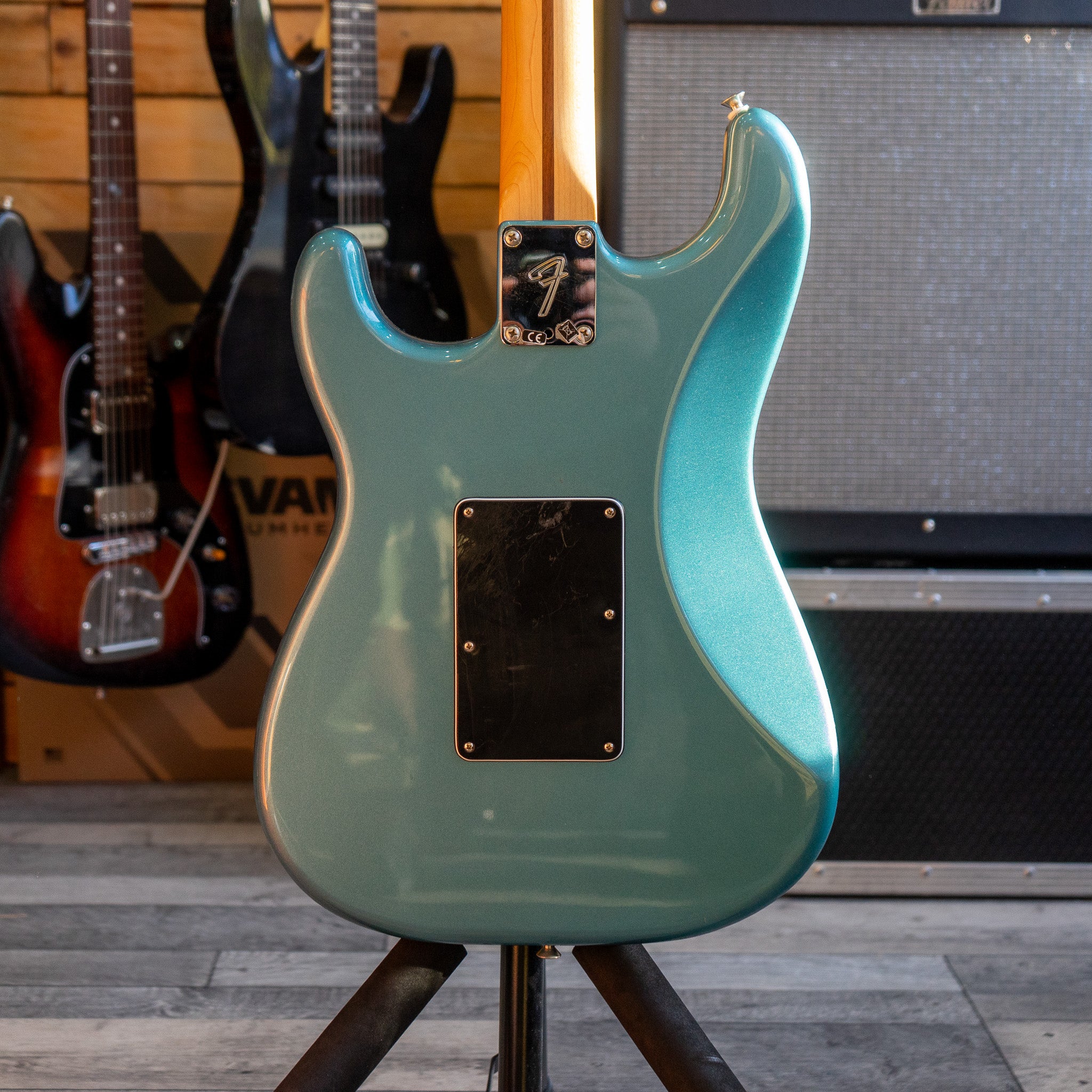 A near immaculate example of the high performance Fender Player Stratocaster HSS Floyd Rose in Tidepool with Hard Case. A real modern weapon with a classic silhouette.