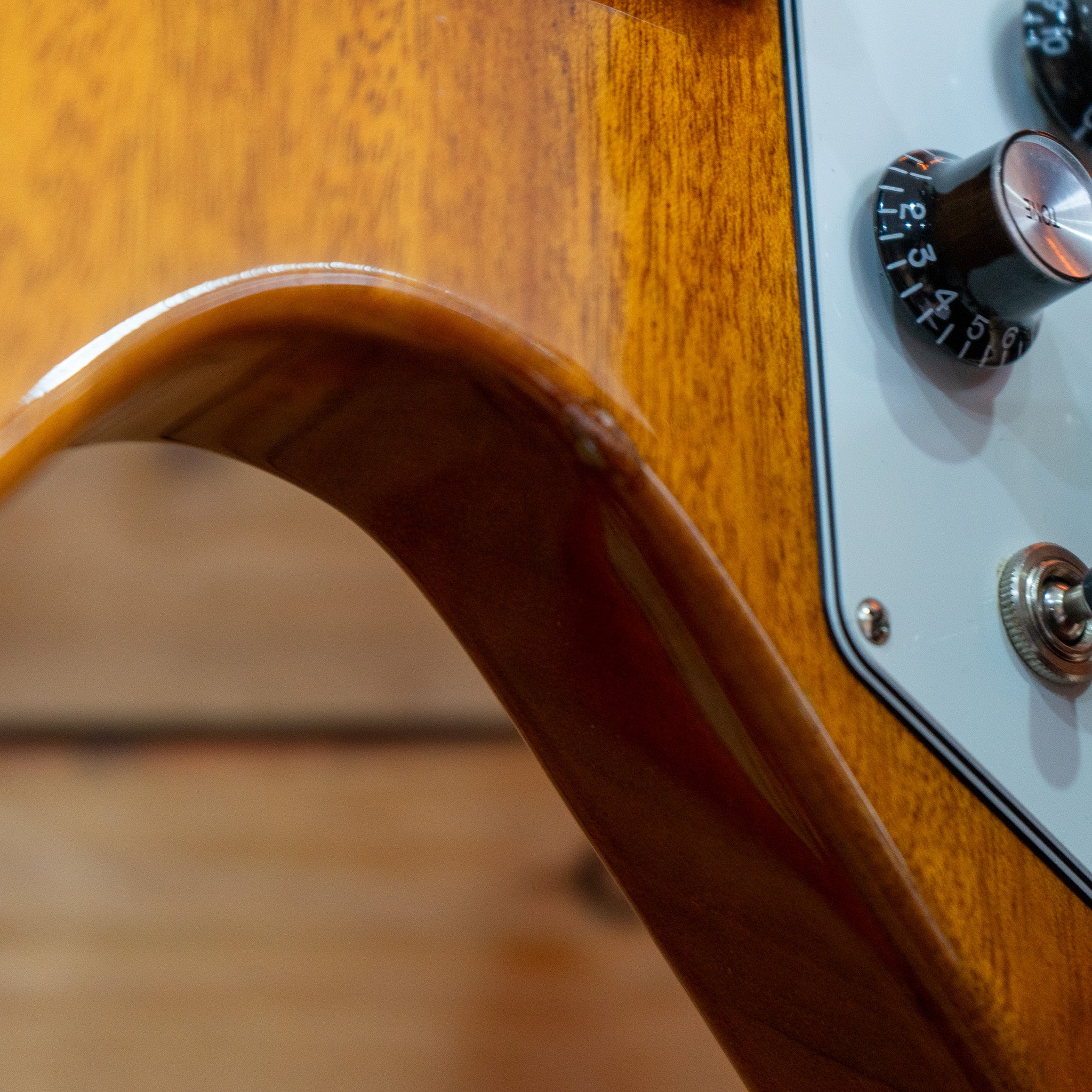 Oooooof. A very very tidy example of the 2020 Gibson Flying V in Vintage Natural with Hard Case. A couple of dinks which I've tried to picture as you'd expect on a big ol' spiky boy like this.